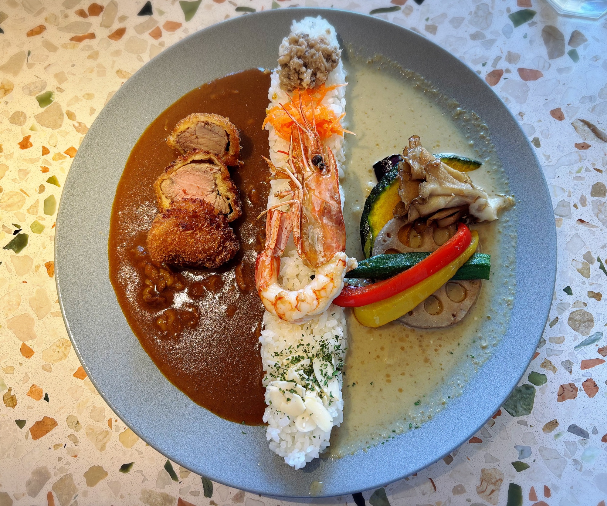私はランチのあいがけカレーで2種類を選び、グリーンカレーと欧風カレーにしました!