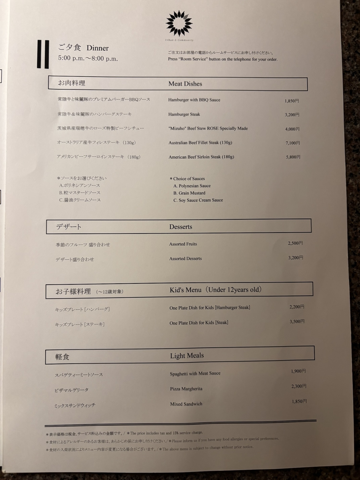 そのほか、ルームサービスもありました。
